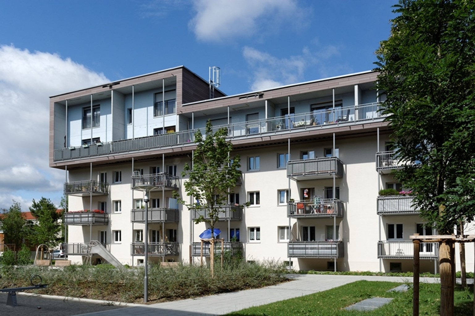 Münchner Wohnen launched the “Wohnen im Viertel” (Living in the Neighbourhood) initiative to enable people in need of assistance to continue living independently in their own homes. The service provides comprehensive care security to residents in inner-city neighbourhoods, offering access to professional outpatient care and support around the clock. By working with recognised social care providers in Munich, the initiative ensures qualified care, emergency support, and personalised advice on further assistance and financing options.
